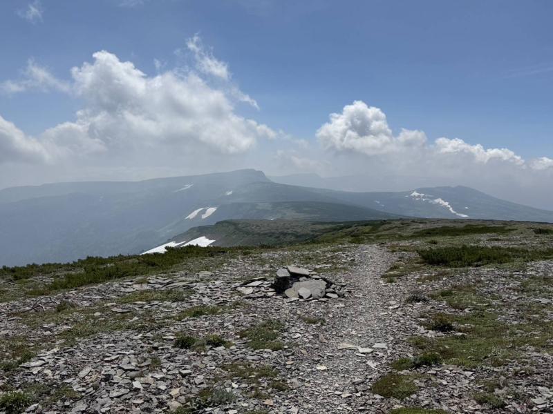 小泉岳を過ぎた辺りではるか遠くに忠別岳が見えて来ます。