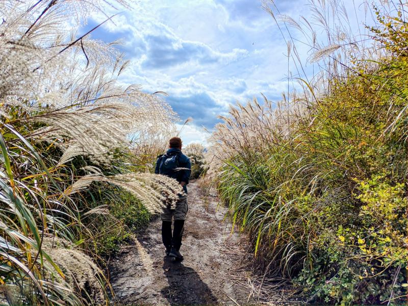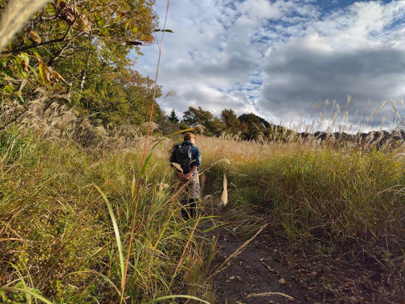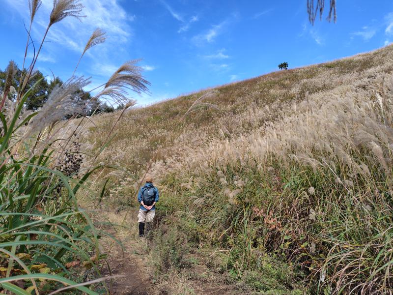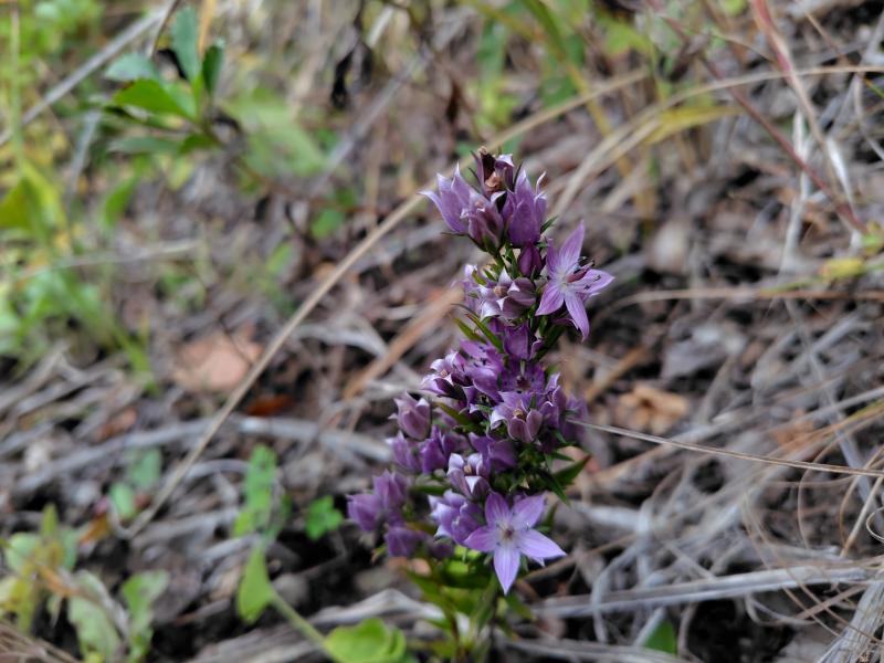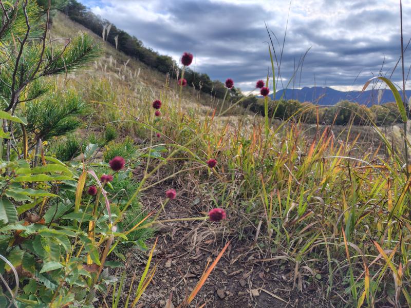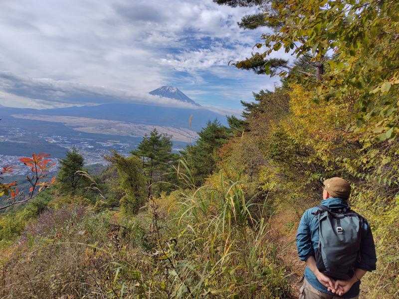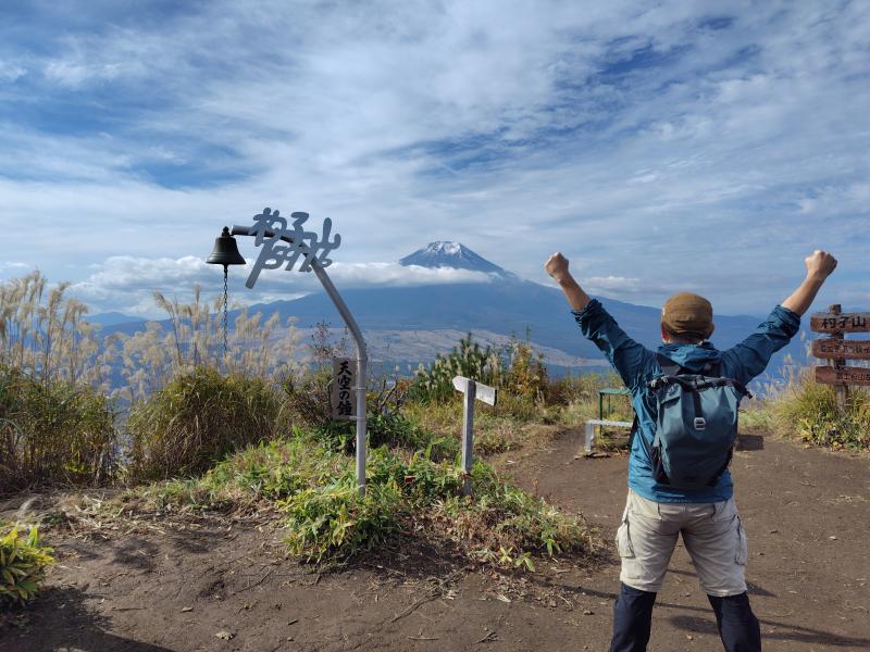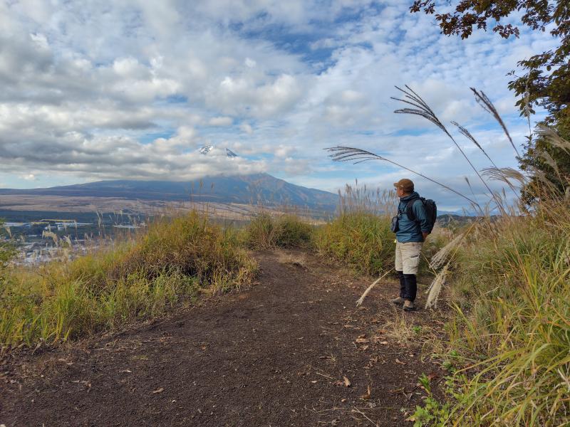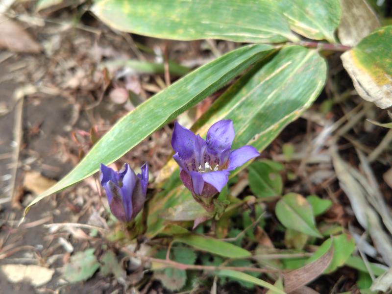 雪化粧の富士山とムラサキセンブリの杓子山【山梨県忍野村】
