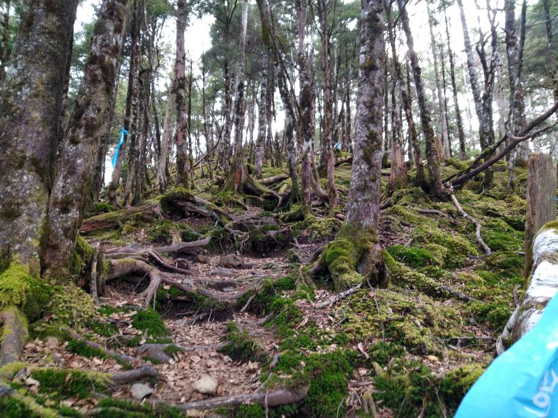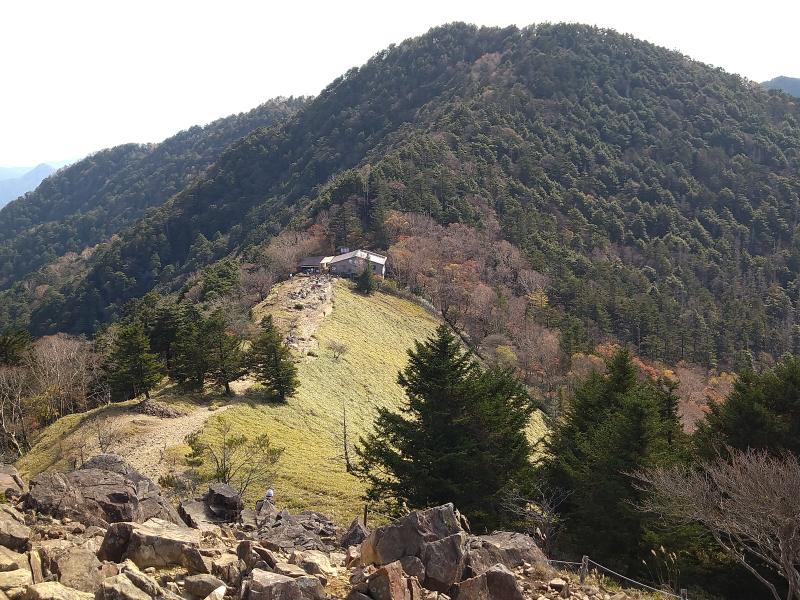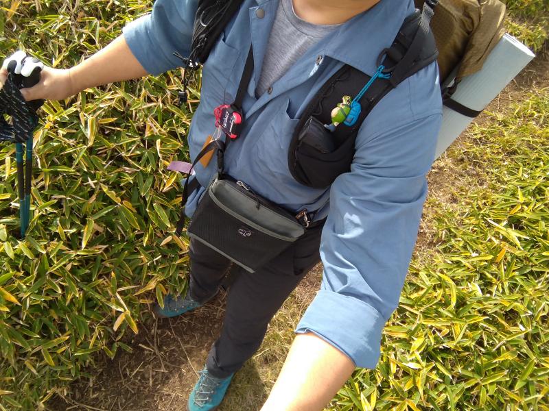 「大菩薩峠」には「介山荘」と言う山小屋があります。売店や食事もあり休憩適地になっています。もちろん、宿泊も可能です。福ちゃん荘からまっすぐくれば1時間かからないくらいなので小学生でも山小屋泊がチャレンジできそうです!「介山荘」では周辺の「山バッチ」も売っています。今日目指す「牛奥ノ雁ヶ腹摺山」も売っているので購入。ついでに「シャインマスカット」も購入。1山¥500-。山でシャインマスカットなんて贅沢だわ。「介山荘」を過ぎると途端に人がいなくなります。深い森の斜面を登り、笹原の中にある「石丸峠」を越えてさらに進むこと90分。「牛奥ノ雁ヶ腹摺山」に到着しました!!