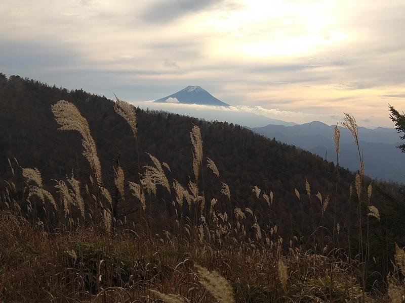山頂は横長であまり大勢だと手狭になってしまう感じですが富士山がドーンと眺められる好展望地です。また少し下がると紅葉も見ごろでとてもキレイでした。「滝子山」から「初狩駅」までは2時間ほど。のこり少ない山旅を味わいながら下山していきます。舗装路に出ると15分くらいで「初狩駅」に到着。途中、商店や食堂はありません。駅前通りを20号に出ると「コンビニ」があるそうです。