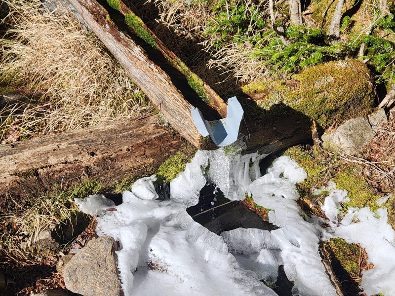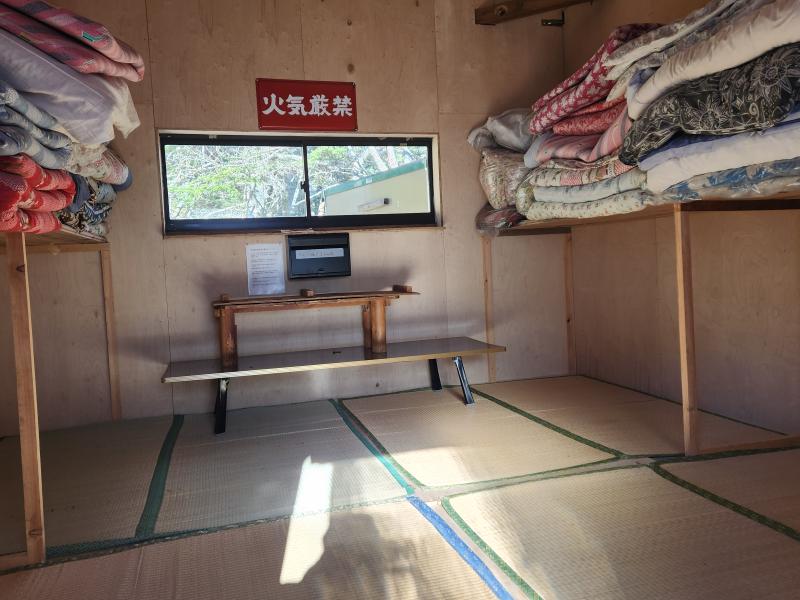○南御室小屋の冬季小屋には毛布や布団が置いてあります。小屋利用料は2000円、中に設置されたポストに入金します。水場も枯れていませんでした。