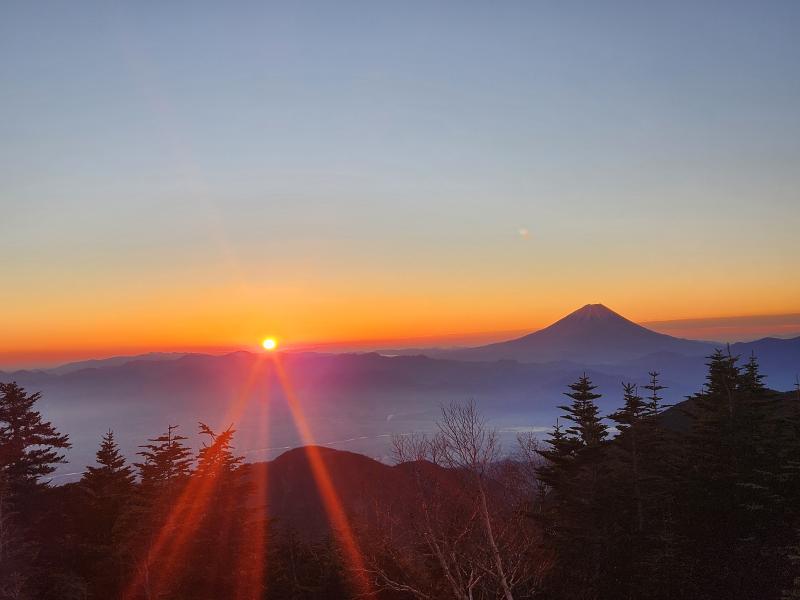 お天気は2日間とも良く、初日は白峰三山に沈む夕日と、翌日の富士山から昇るご来光を眺めることが出来ました。夜には満点の星空も堪能し、泊まりでしか味わえない醍醐味を満喫しました。