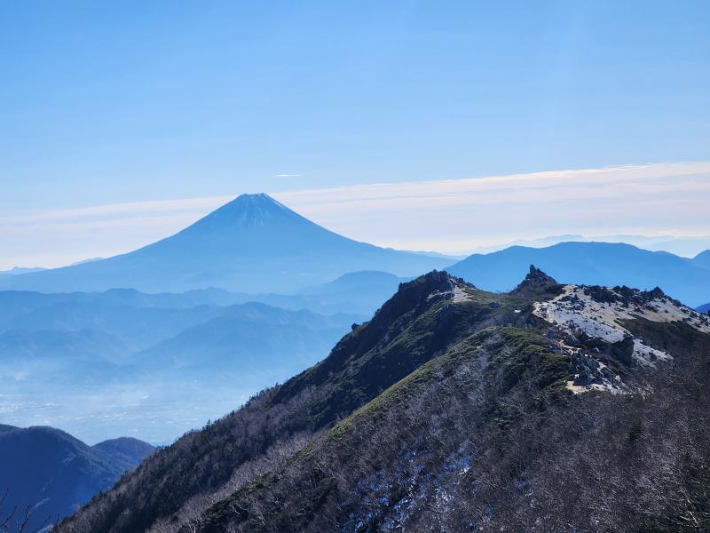 観音岳から地蔵岳までの日の当たらない斜面には凍結箇所があり、下る時にスリップしかけました。この時はチェーンスパイクは持っていましたが使わず仕舞い。今はスパイクよりもアイゼンが必須だと思われます。また稜線の風はかなり強いので、バラクラバやニット帽にアウターのフードを被って歩くのがおすすめです。最近はフード付きの中間着がたくさん出ていて、フードをすっぽり被ると目出帽、つまりバラクラバ代わりになるフリースが各メーカーからたくさん出ています。見た目は可愛くないですが、荷物を減らせるので重宝します。今回私はミレーのスルーウォームフーディを着用しました。同じミレーのワッフルウールフーディや、ノースフェイスのエクスペディショングリッドフリースフーディが次に狙いたいアイテムです。