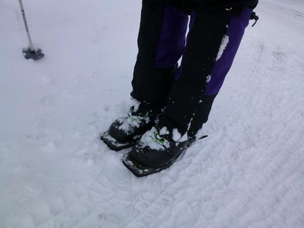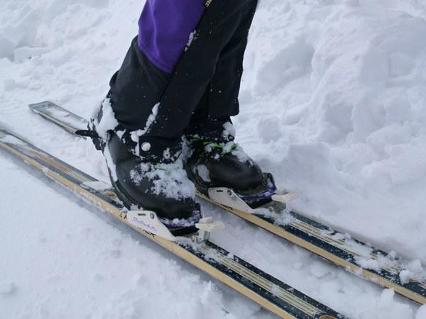 初めてスキー板を履いて雪を歩きます!ふわふわの様なむくむくっとした感触もある様な…。ちなみに、板を外すと腿まで埋まりました。