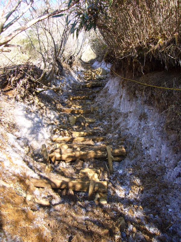 - よく整備された登山道で楽しく登れるコース♪雪の心配もなく(山頂付近のみ少し凍結部分有り)安心して歩けますが、霜柱が多く南向きのコースなので日が照って溶けた場所はドロドロで悲惨な事に…