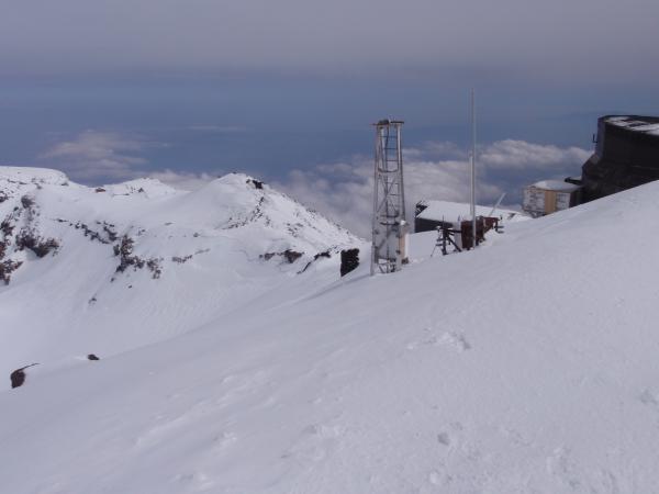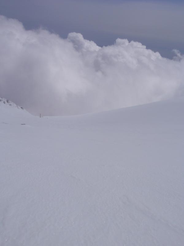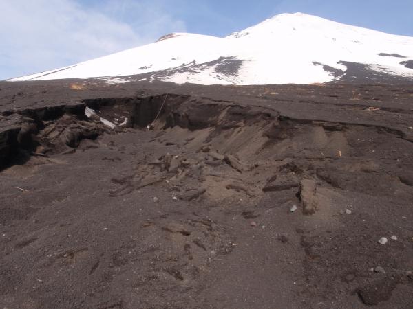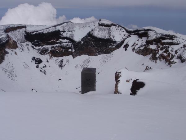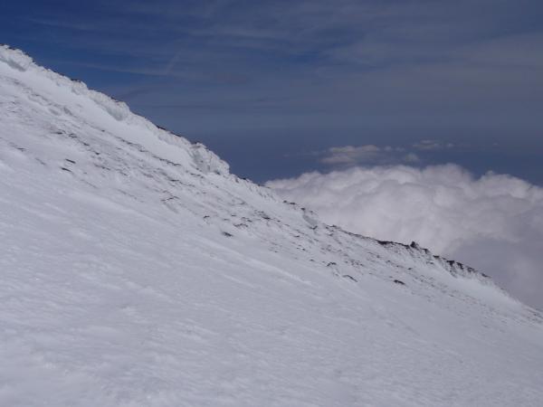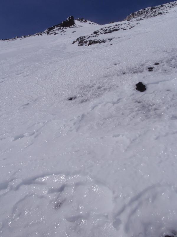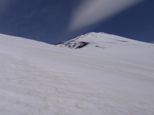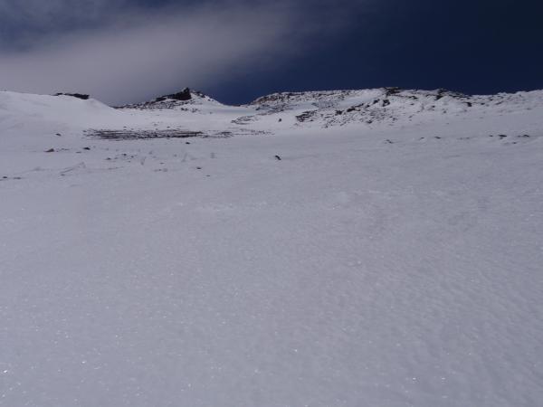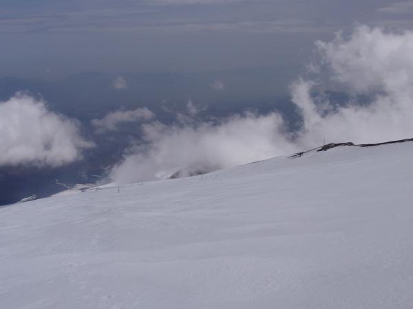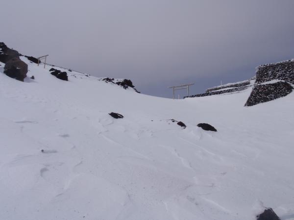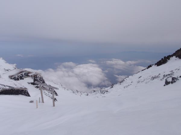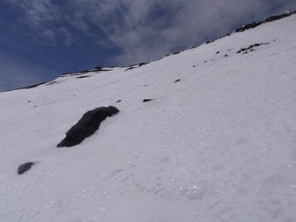6合目までは積雪はあるものの、雪もさほど硬くなくスーキーヤーの滑った跡もありました。