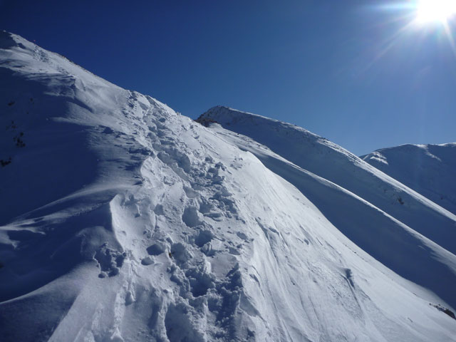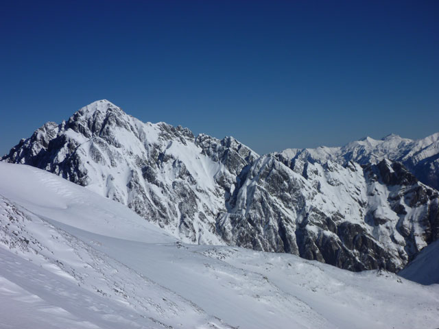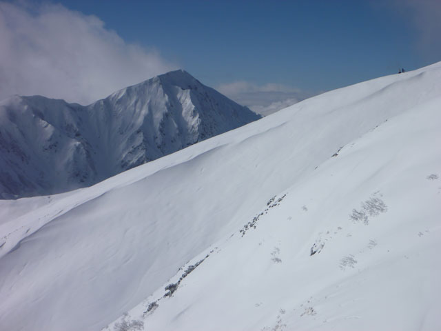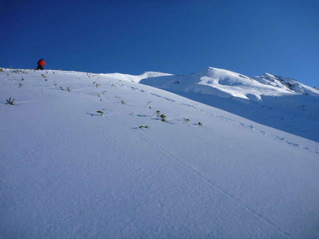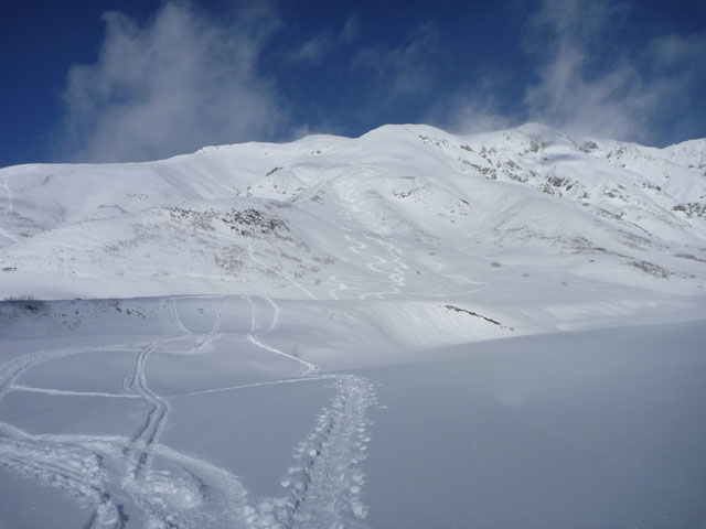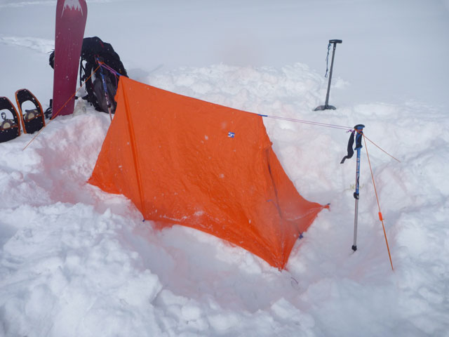 前日の17日の夜からの雪のおかげで18日はパウダースノーを楽しめました。今回、雪上でのツエルト泊を経験しましたが、やっぱりかなり寒かったです。また1・2人用のツエルトでは、狭くて中で自炊できませんでした・・・積極的にテント代わりに使うなら2・3人用がよいと思いました。