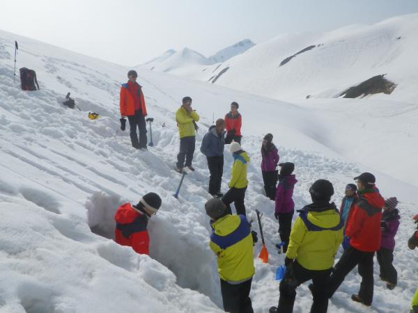 初日、雷鳥沢山荘までの移動。昼から雪洞造りの研修。この後自由行動にて、雷鳥沢を滑走。この日は山荘泊まり。二日目は、ツアーで、一乗越からその先への行動計画。が、一度天気が荒れると場所も特定しずらくなる冬山、周囲はホワイトアウト状態で、滑る余裕は無く計画途中で安全を第一にテント場に帰還。