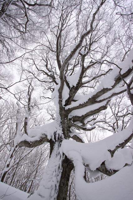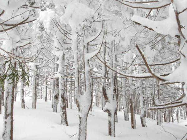 積雪は当然のことながら多く、最初からスノーシューを装着しての登り(それでも膝までのラッセル)。