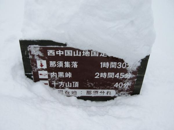 無雪期の標準コースタイムでは、十方山の頂上まで1時間弱の地点ですが、