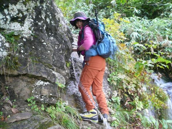 - 戸隠神社奥社からは急登の連続で、山頂稜線からルートを見るとほぼ垂直に登ってきたことが判るほどのコースです。途中鎖場の急登が何か所もあるので、核心部の蟻の塔渡りを目の前にして「怖いから引き返す」はお勧めできません。中・上級レベルの登山技術で臨むことをお勧めします。一不動避難小屋からの下山ルート途中にも鎖場が2カ所あり、こちらは沢沿いでスラブ状の岩なので足や手を滑らせないように慎重に。幅は狭いですが何度も沢を渡渉するので、防水の効いたしっかりとした登山靴は必須です。雨が降って水量の多い日や、大雨が降った後などはもう1時間かけて五地蔵山経由のコースで下山したほうが良いと思います。