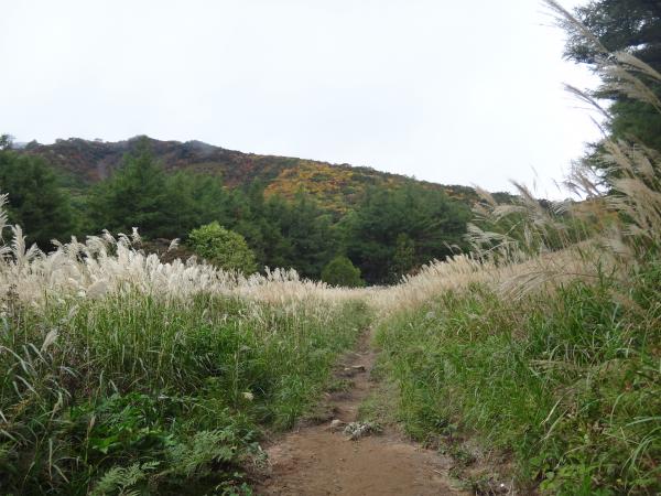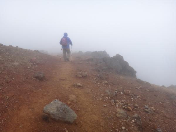 牛の背はその名の如く広くなだらかな火山台地で赤土が目立ち、沼ノ平の火口からは硫黄の香りがしてきます。ここでもガスの為火口は見えませんでした。
