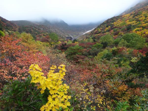 小屋を後にしてから徐々にガスが取れ、待ち望んでいた景色が顔を出し始めました。目の前全てが錦です!暫く呆けたように見つめてしまいました。何度も何度も振り返ってしまう程の絶景で下るのがとても名残惜しかったです。