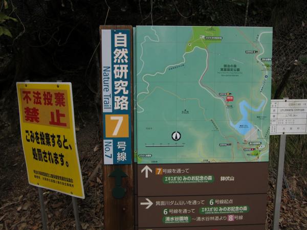 - 箕面駅…60分…ビジターセンター…45分…みのお記念の森…15分…鉢伏山…30分…明ヶ田尾山…30分…高山バス亭