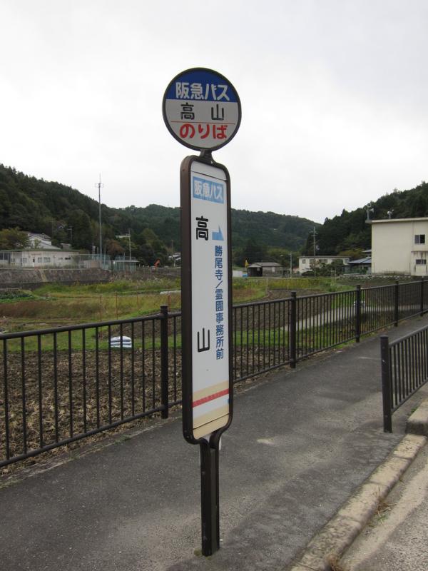 下山した高山の集落にある高山バス停は