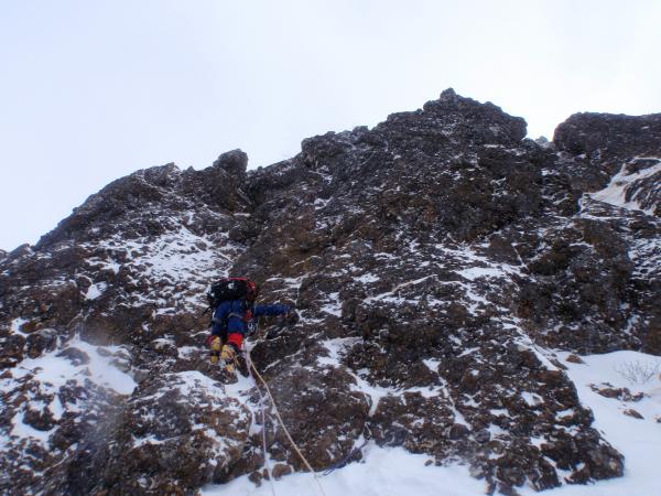 - 14日から15日にかけてまとまった降雪があったため、登山道及び各ルートまではラッセルだった。