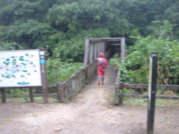 - スタートからゴールまでずっと雨。前日からの降り続いていて、特にコースの後ろ1/3は泥んこ状態。非常に滑りやすく、ロード用のランニングシューズで出場していた人はかなり苦労していたよう。コース表示は各所しっかりしていましたので、間違うことは少なそうですが、初めての方は下見はしておいたほうが無難です。