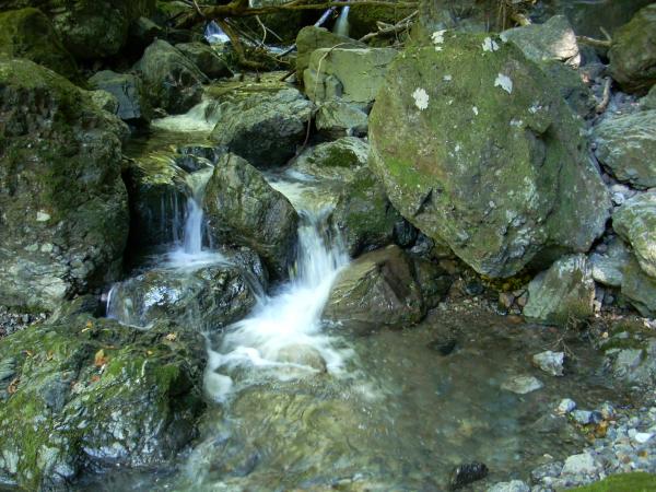 清滝小屋までの道は沢沿いの水平道が長く6回沢を渡ります。(増水時は注意が必要です)