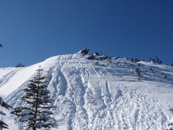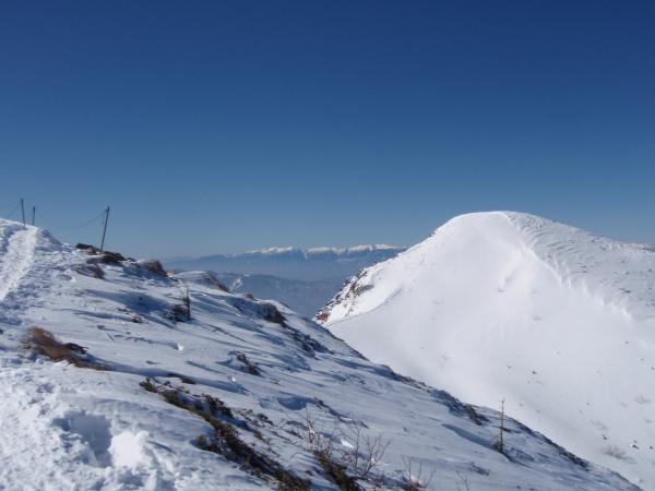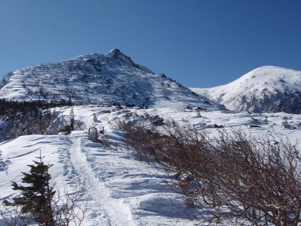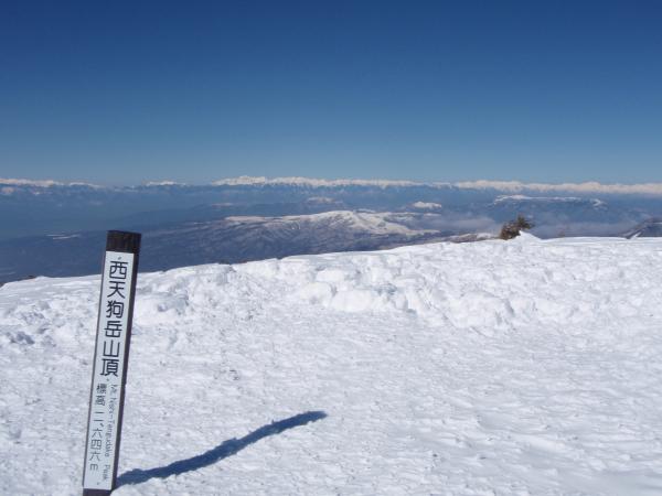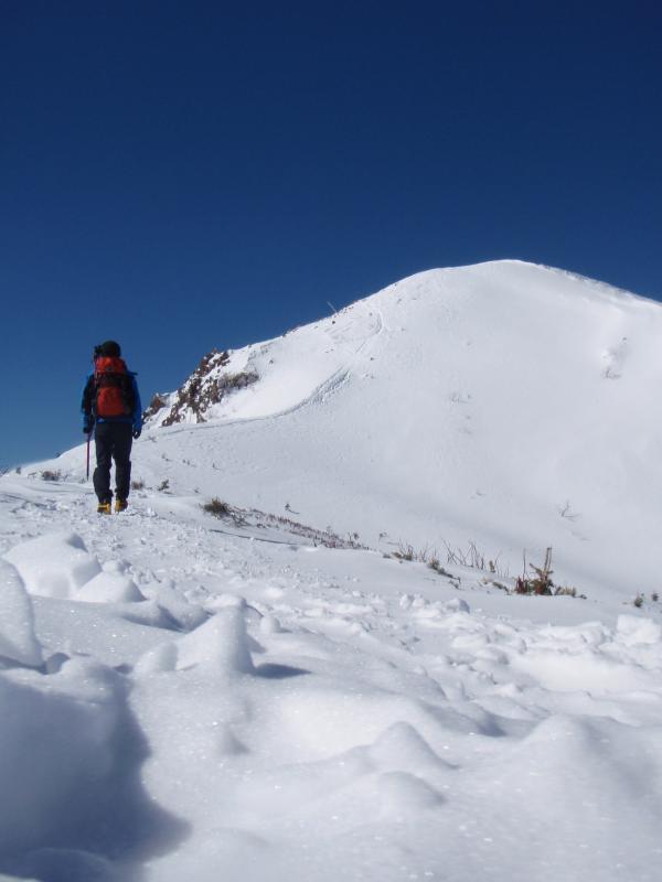 西天狗への最後の登りは、風がやや強くトレースが消えかかっています。