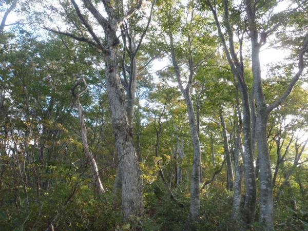 - 広域基幹林道登山口(25分)アダムとイブの木(35分)保月山(45分)杓子岳(15分)中岳(20分)