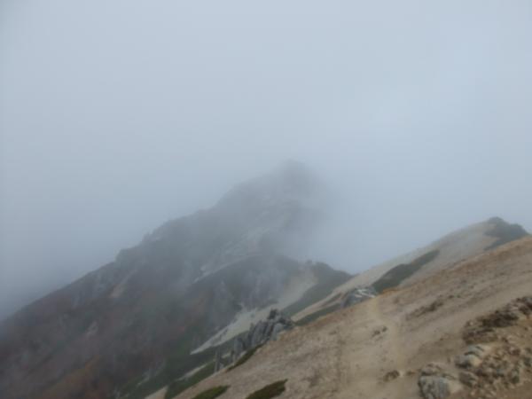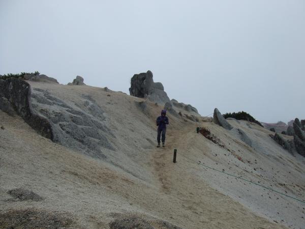 合戦小屋から頂上までは強風。風に飛ばされないように慎重に。気を抜くと、風に煽られてしまいました。