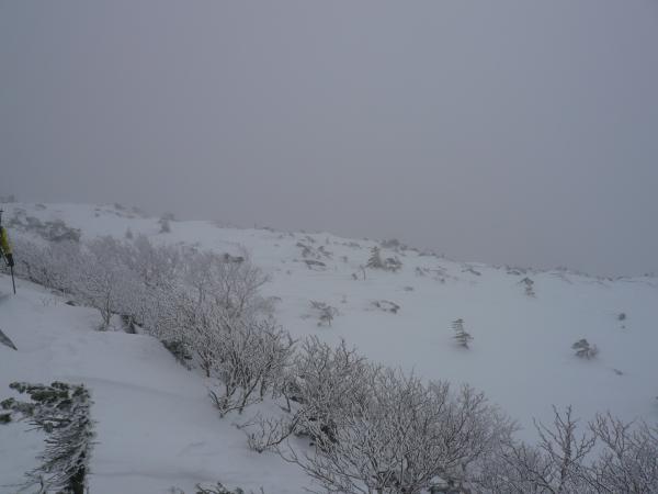 アイゼンの重みを足に感じつつ、こんな感じだったなあと思い出しながら歩いてたら、突然ぽんっと稜線に出ました!。