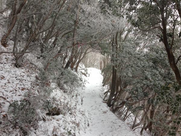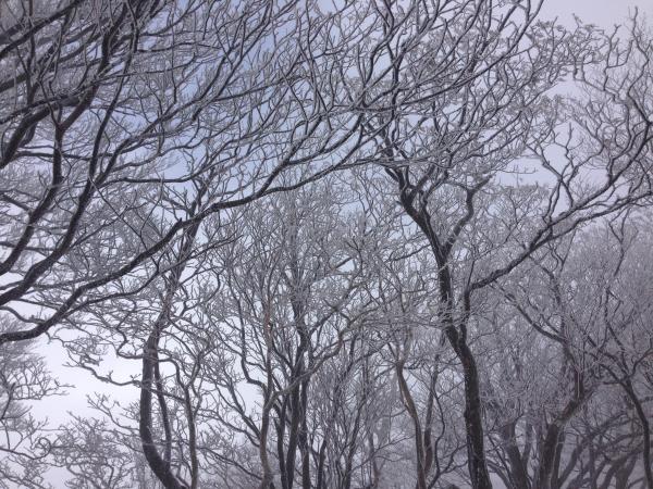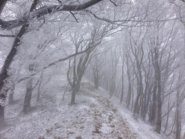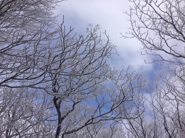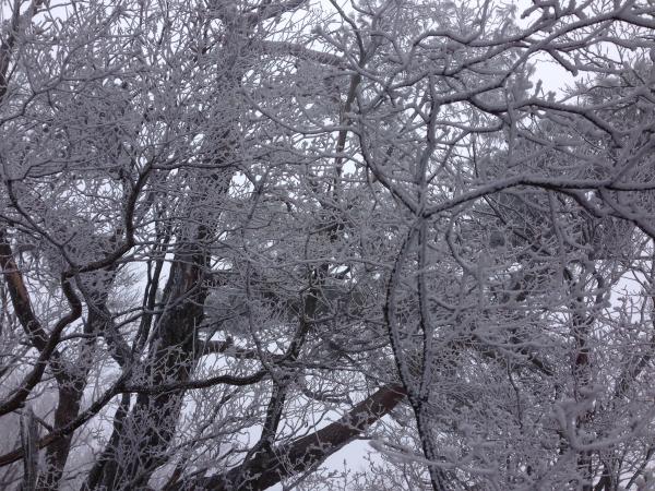 歩きやす~い登り始めの林道から別世界の真っ白な景色に、霧氷に出会えました!