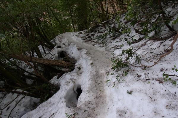 ウィルソン株より上の木道は、凍結ですべるところがありました。雪道の空洞に気をつけて下さい。