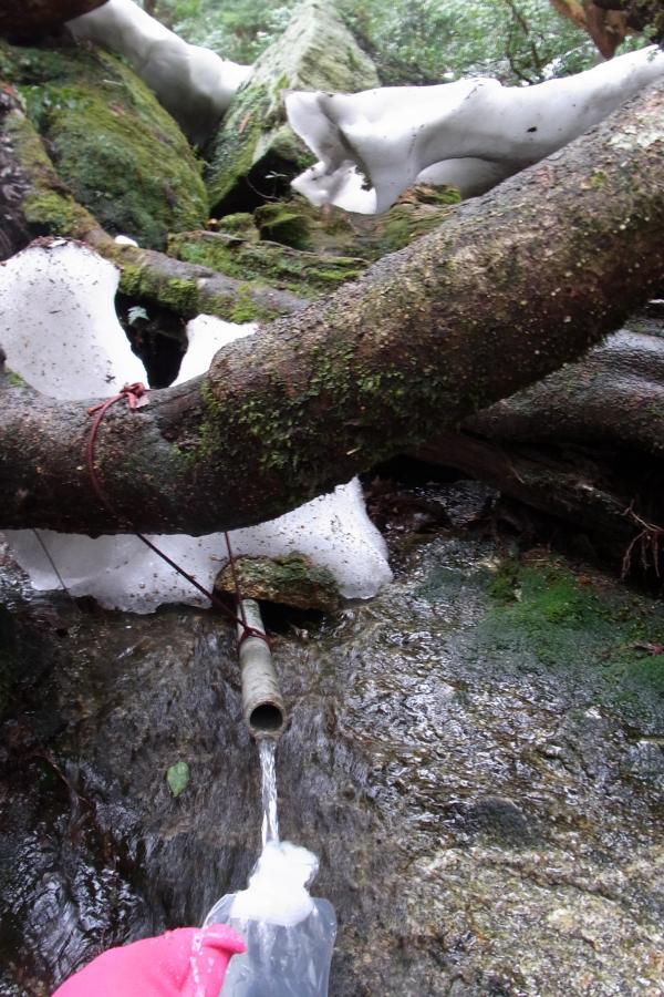 - トロッコ道には雪はありませんでした。ウィルソン株より上は雪が残っています。アイゼンか滑り止めが必要です。ガイドさん同行グループは、滑り止めでした。高塚小屋に向かうにはアイゼンが必要です。