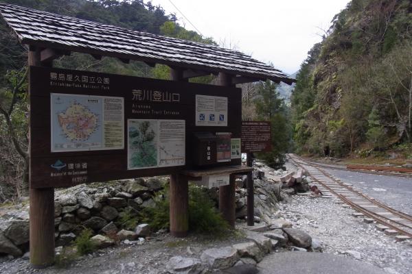 - 荒川登山口-(50分)-小杉谷休憩舎-(30分)-楠川分れ-(60分)-大株歩道入口-(30分)-ウィルソン株-(45分)-大王杉-(40分)-縄文杉-(10分)-高塚小屋-(10分)-縄文杉-(90分)-大株歩道-(90分)-小杉谷集落跡-(45分)-荒川登山口 TTL8h20m(休憩除く)