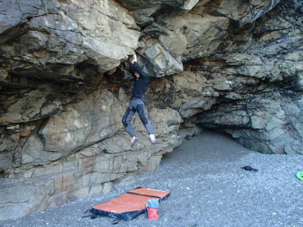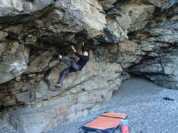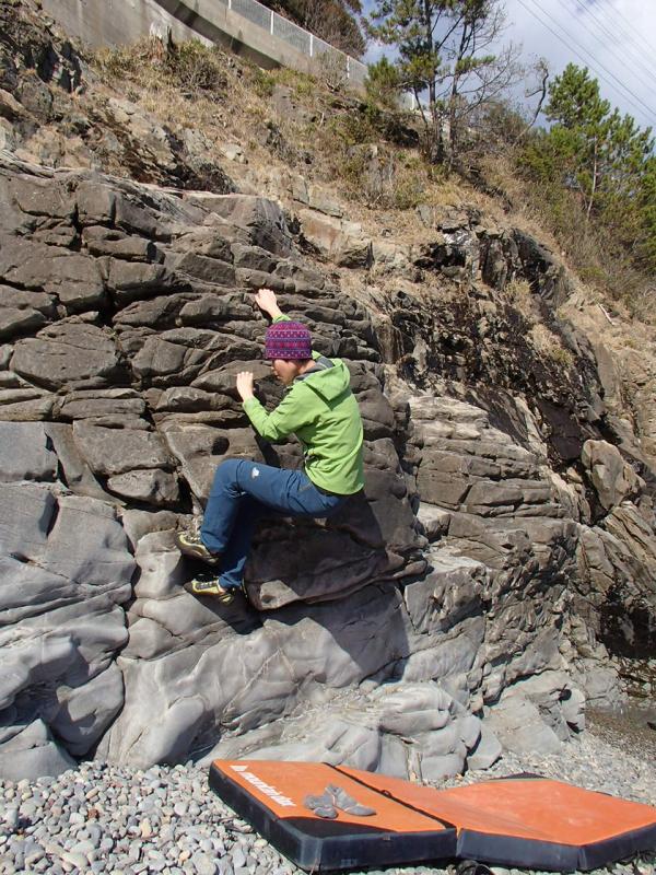 寝坊したので阿瀬比ノ鼻のルートではなく、近くのお手軽な大浜海岸のボルダーへ変更しました。