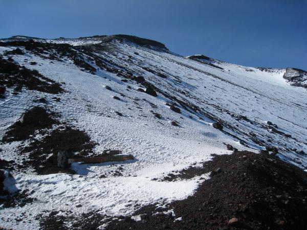 天候にもよると思いますが、1300M付近からは雪が柔らかくなり、ラッセルが必要ですが、標高を上げるペースは一気に上がります。