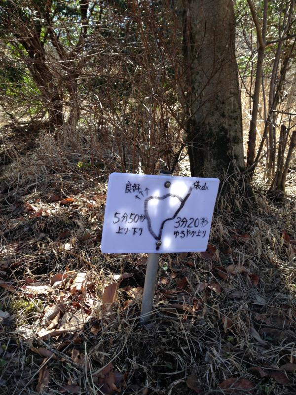 - 俵山峠駐車場(2分)俵山展望園地(20分)雨量計方面分岐(65分)俵山(50分)雨量計方面分岐(20分)俵山峠駐車場