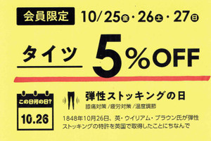 10月26日は「弾性ストッキングの日」ということで・・・ 10月25日~27日の...