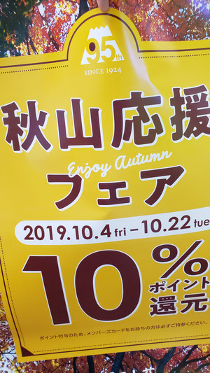 秋山応援フェア開始!ポイント10%還元で増税もチャラ!?