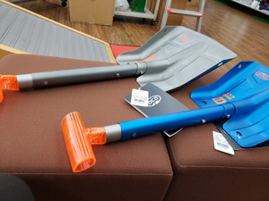アルミ製の軽量ショベルです。 ゾンデも入荷しています。ビーコンはまだですが、冬山...