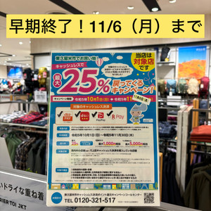 大好評の「キャッシュレス最大25%戻ってくるキャンペーン」が早期終了になります。...