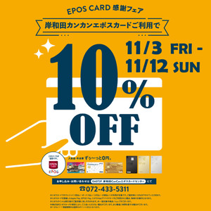 岸和田カンカンベイサイドモール店限定!! お支払い10%OFFの大変お得な期間で...