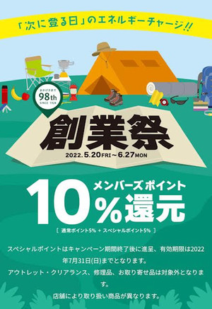 創業祭!! 5月20日(金)~6/27日(月) おかげさまで好日山荘は98周年を...