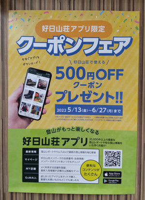 【好日山荘アプリ限定❤】5500円以上で500円OFF✌クーポンフェアスタート♬