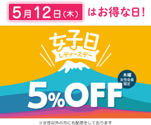 本日5/12は毎週木曜日恒例のレディースデイですので、女性の方が得する一日です。