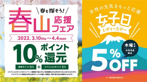 レディースディーで5%OFF&「春山応援フェアー」でポイントもゲット!