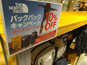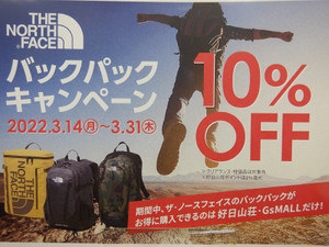 本日よりスタートのキャンペーン! 3/14~31の期間中 ノースフェイスのバック...