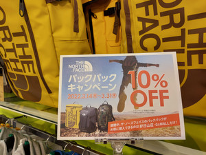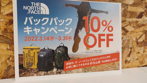 ノースフェイスのバックパックキャンペーンが始まりました!! 定価の商品が10%O...