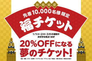 先着10,000名様限定でお好きな商品を1点だけ20%OFFになる 『福チケット...