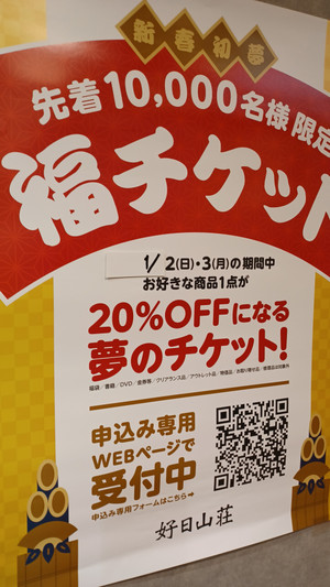 【1点だけ20%OFFに?!】元旦から3日まで1点だけ20%OFFになる『福チケット』予約開始!