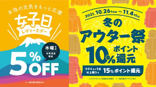 レディースディーで5%OFF&最終日・冬のアウター祭!