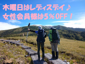 毎週木曜日はレディースデー♪ 好日山荘のメンバーズカードをお持ちのお客様...