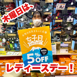 木曜日はカード会員の女性の方限定! 定価の商品が5%OFF!になるレディースデー...