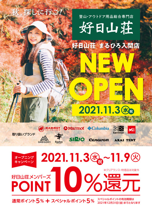 いつも好日山荘名古屋栄店をご利用頂きまして 誠にありがとうございます。 11月9...